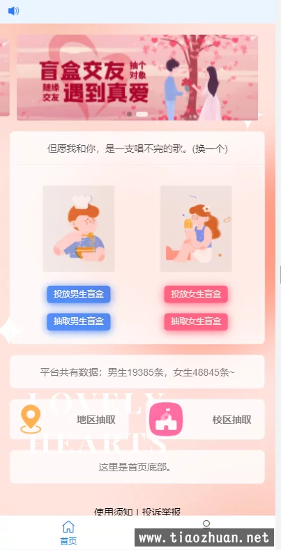 java美化版交友盲盒月老盲盒恋爱盲盒 程序后端使用java开发(jar包非纯源码),前端是h5开发,无需公z号绑定版本特点:可以添加校区筛选。可以指定学校的人抽中分销代理可以设置java美化版交友盲盒月老盲盒恋爱盲盒... 2021-11-08 364 #月老 #美化 #恋爱 #交友 #java