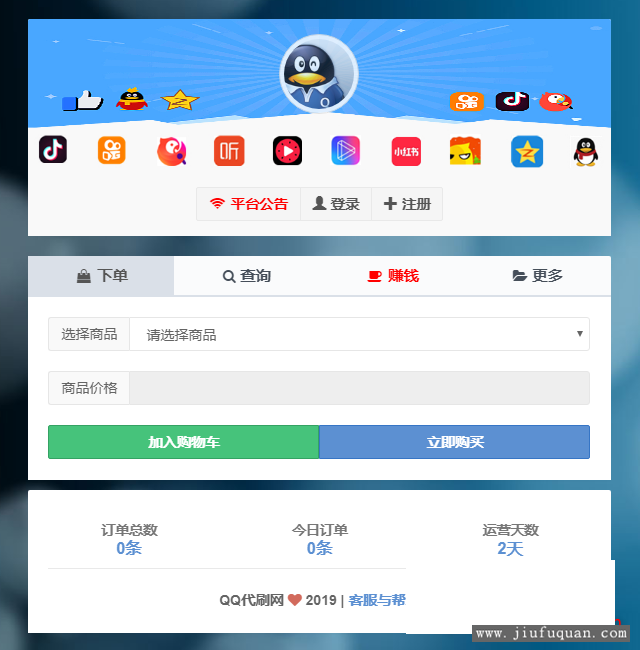 彩虹代刷自助下单系统V5.9无授权安装版,带19套前台模板+无限分站 去授权纯净安装版V5.91.优化电脑版首页查单界面2.增加一个粉色首页模板3.更新推广领赞页面4.极限验证码可免注册使用5.新增支付宝彩虹代刷自助下单系统V5.9无授权安装版,带19套前台模板+无限分站... 2023-12-16 392 #模板 #自助 #彩虹 #下单 #前台 #分站