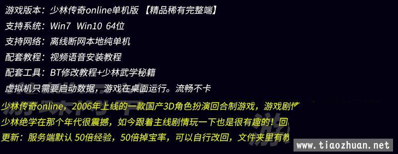 少林传奇ol单机版一键端3DRPG配套修改教程+少林武学秘籍 更新时间:2023-02-11 17:11:46 点我收藏 首发时间:2023-02-11 17:13:18 本文地址: https://www.jiufuquan.com/ziyuan/youxi/61243.html 版权声明:本站转载仅出于为网民提供信息参考之用,如有侵权 请提供权属证明 通知本站删除侵权链接。 本站只收集搬运资源、我们不验证资源是否完整与可用,需要会员自行研究搭建测试 。 升级超级VIP会员 全站(99%)的资源免费下载,本站均为虚拟资源,购买下载后不退款! 积分下载 VIP免费 标签: 少林 一键 武学 单机版 秘籍 上一篇雷霆神魔2.0定制版传奇H5三网页游Linux手工外网服务端 下一篇DOF单机版100级暗夜黑金版 相关文章 GGE2互通千界西游+星云西游东海渊无双版,带全套源码+一键组队助战+GM使用及外网架设视频 GGE2互通【大圣西游】全套源码+一键组队助战等,带GM工具+安装及服务器架设视频教程 MT3换皮MH【逆风西游3突破尊享挂机版】单机一键镜像端+Linux手工端+安卓苹果双端+GM后台+全套源码 3D国战端游【赤壁之三分天下】最新单机版,修复完善+GM工具+安装视频教程 魔兽世界80版谷神端少林寺版本,超智能机器人副本走位,新技能附魔+商城+局域外网教程 新天翼之链V422最新修复单机版+GM命令+爆率经验属性修改+视频教程 卡牌手游【星辰变】单机一键镜像端+Linux手工服务端+安卓苹果双端+GM配套物品后台 卡牌手游【奇幻大陆2】单机一键镜像端+Linux手工服务端+安卓+GM后台 MT3换皮【神魔西游2尊享挂机版】单机一键镜像端+Linux手工服务端+安卓苹果双端+GM后台+全套源码 卡牌回合手游【航海王·起航六UR代金券内购版】单机一键镜像端+Linux手工服务端+管理后台+安卓 手游【机甲猫三国H5代金券内购多区跨服版】单机一键镜像端+Linux手工服务端+管理后台+运维后台+GM授权后台+ 复古三族大话最新狠人大话1.8单机版+带助战+主线剧情,完善耐玩+Gm使用修改